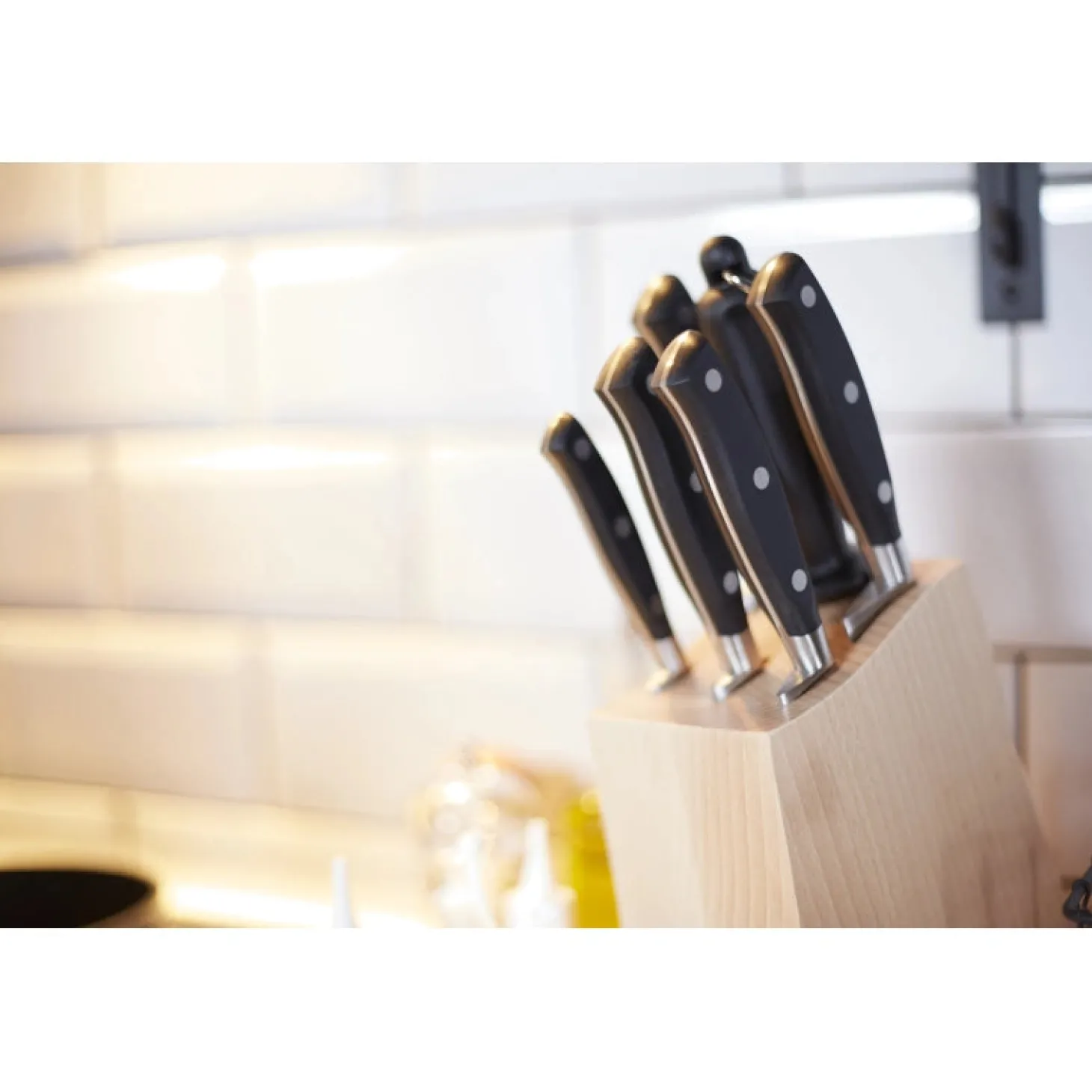 Avec cet ensemble de cuisine, vous aurez à votre disposition différents produits pour réaliser vos tâches en cuisine et préparer de délicieux plats. Cet ensemble comprend 4 couteaux de la gamme Riviera d’Arcos et un fusil qui vous permettra d’affûter tous les couteaux. Il intègre également un bloc de couteaux en bois pour fournir un espace approprié pour ranger tous ces ustensiles de cuisine.