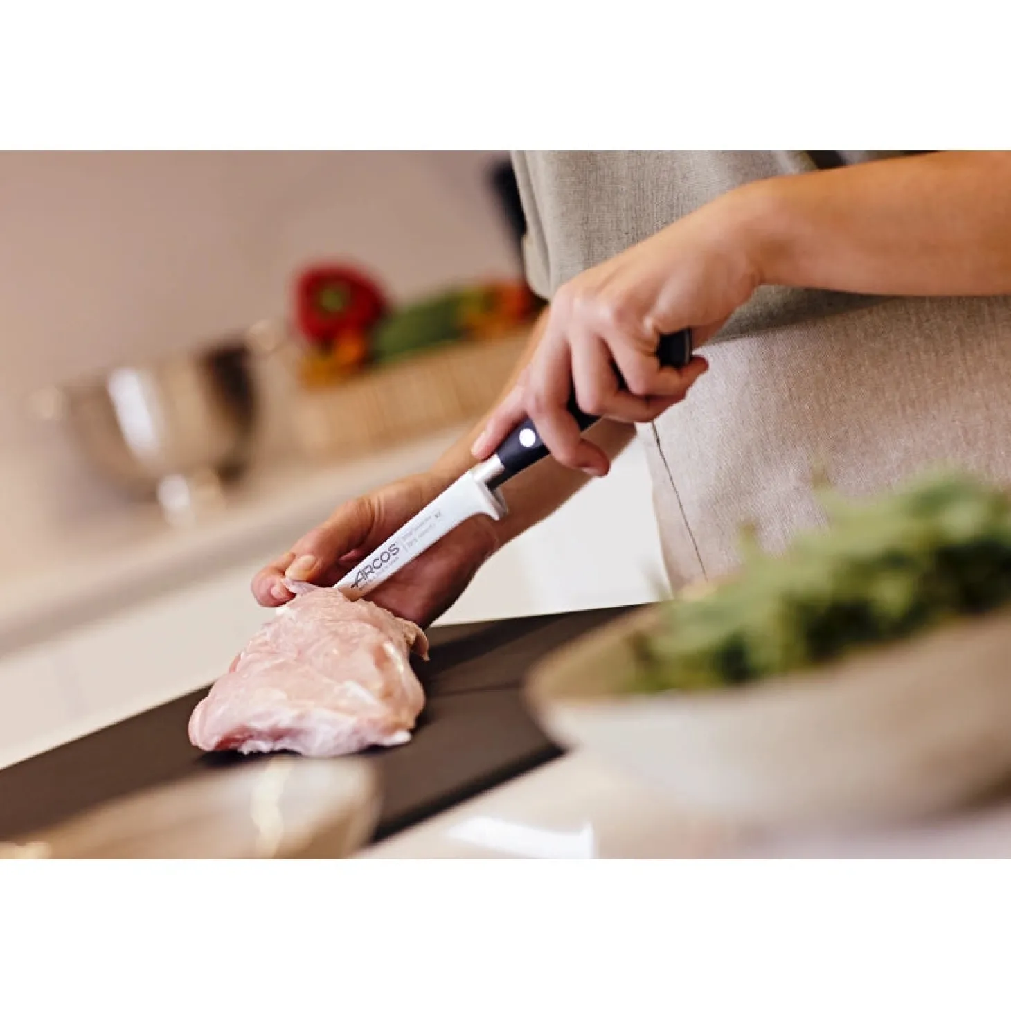 Le Couteau à désosser Série Riviera 130 mm fabriqué par Arcos vous offre la meilleure qualité possible dans votre cuisine pour désosser la viande.