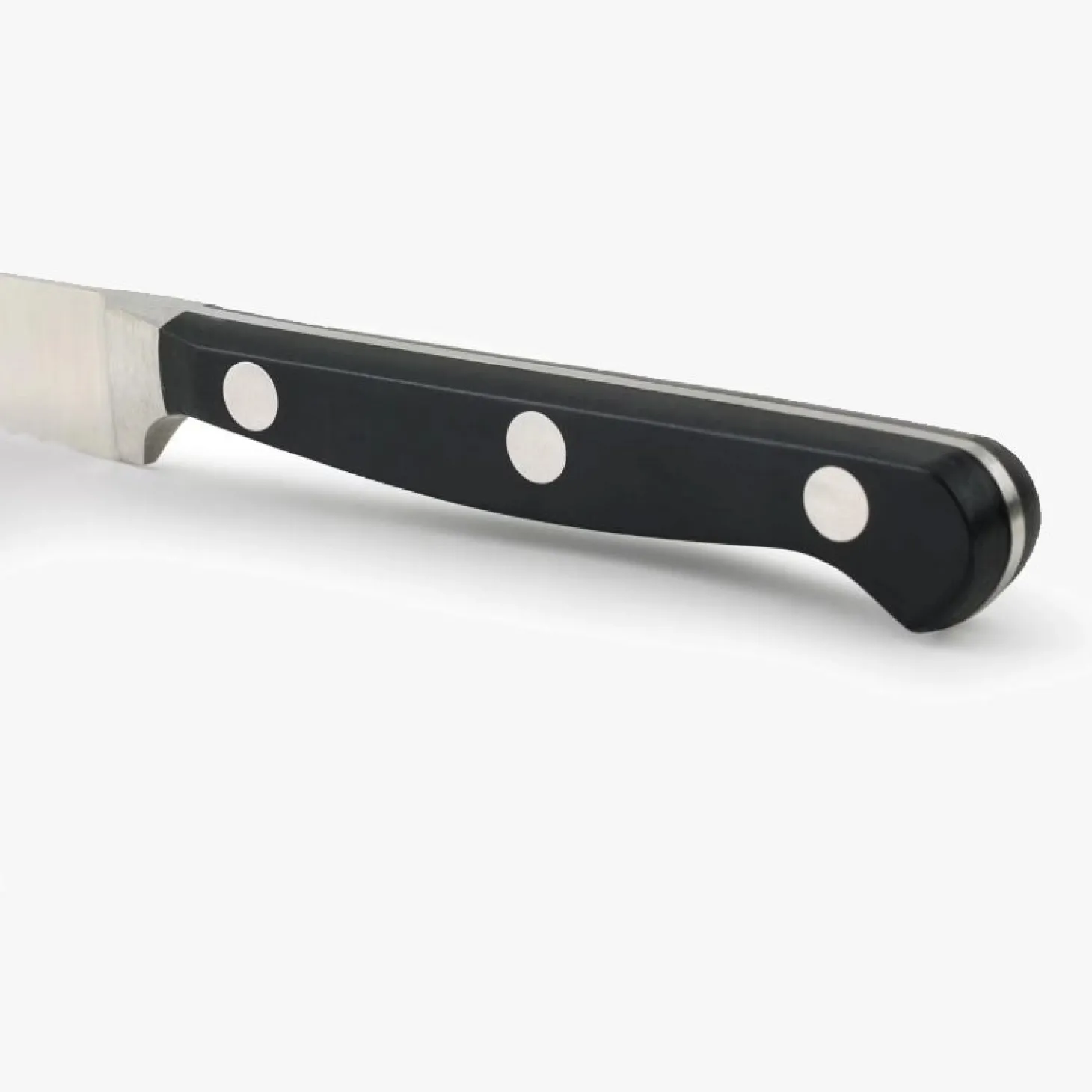 Lame courte, forte et crantée. Destiné à couper les tomate en rondelle ou en morceau sans effort.