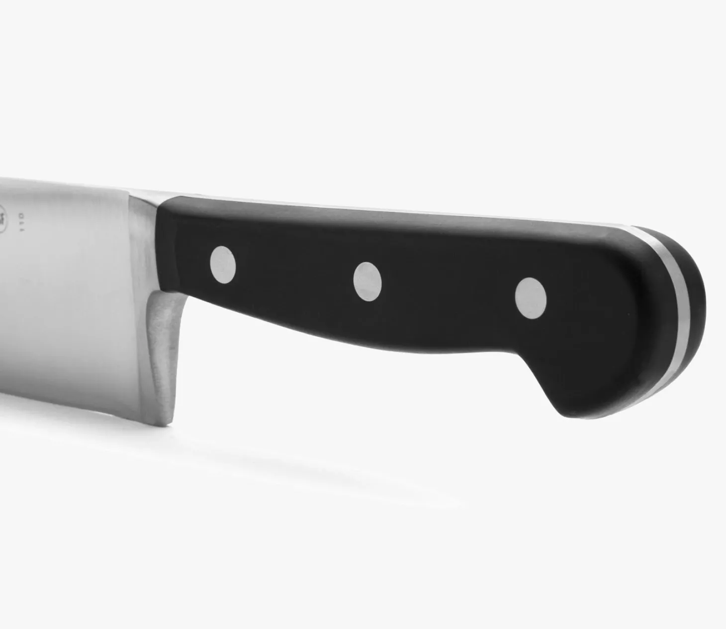 Lame large et forte avec un talon, fil lisse. Couteau multi usage pour les professionnels et les cuisiniers. Permet d’émincer et de couper.