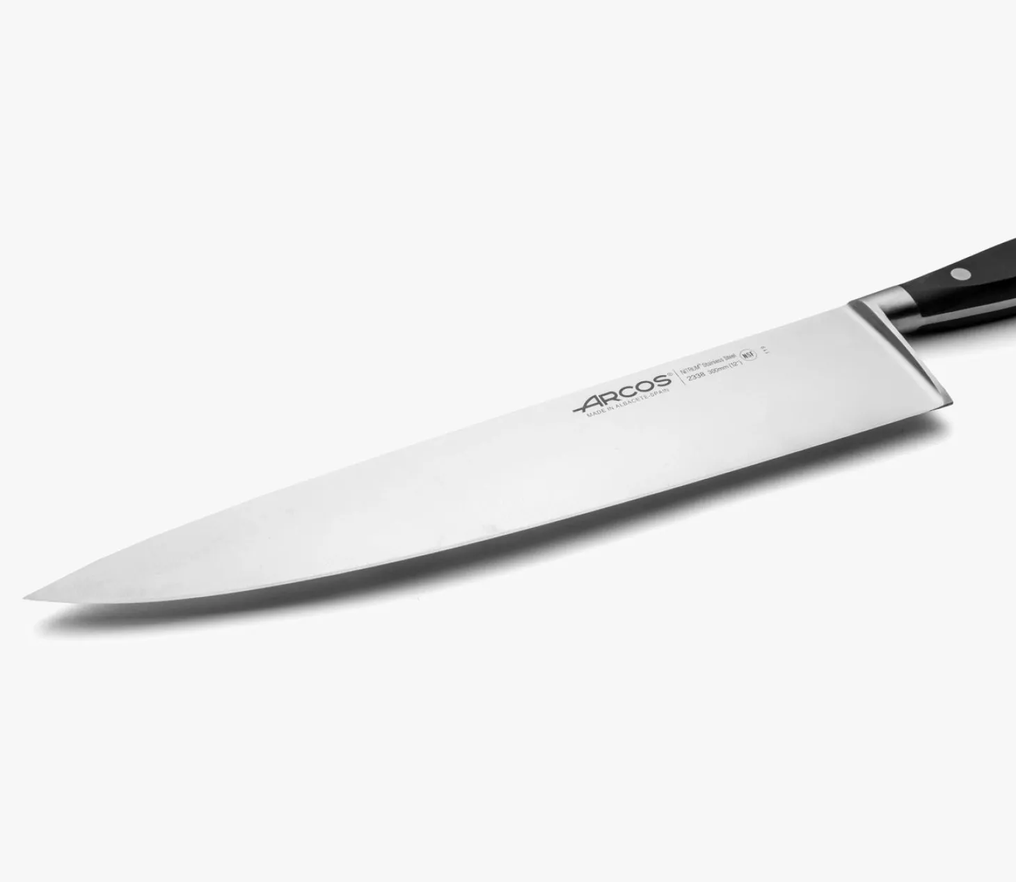 Ce Couteau de Chef de la série Riviera de 300 mm en acier Nitrum® de la marque Arcos est parfait pour couper la viande grâce à sa grande taille, son tranchant et sa résistance.