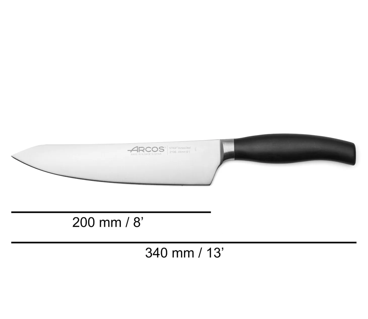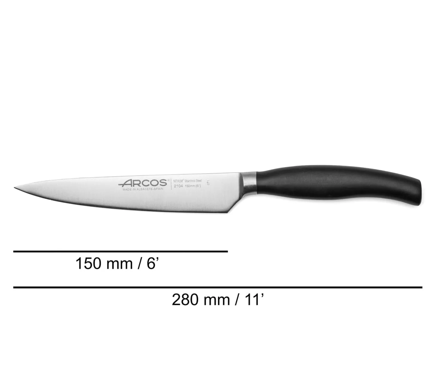 - 4 precisos cuchillos de la serie Clara: Cuchillo mondador o « puntilla » (100 mm), cuchillo de cocina (150 mm), cuchillo cocinero (200 mm), cuchillo panero (200 mm). Cada cuchillo Clara tiene una hoja forjada de acero NITRUM®, que lo dota de dureza, poder y durabilidad. Mango de polipropileno unido a la hoja por inyección.