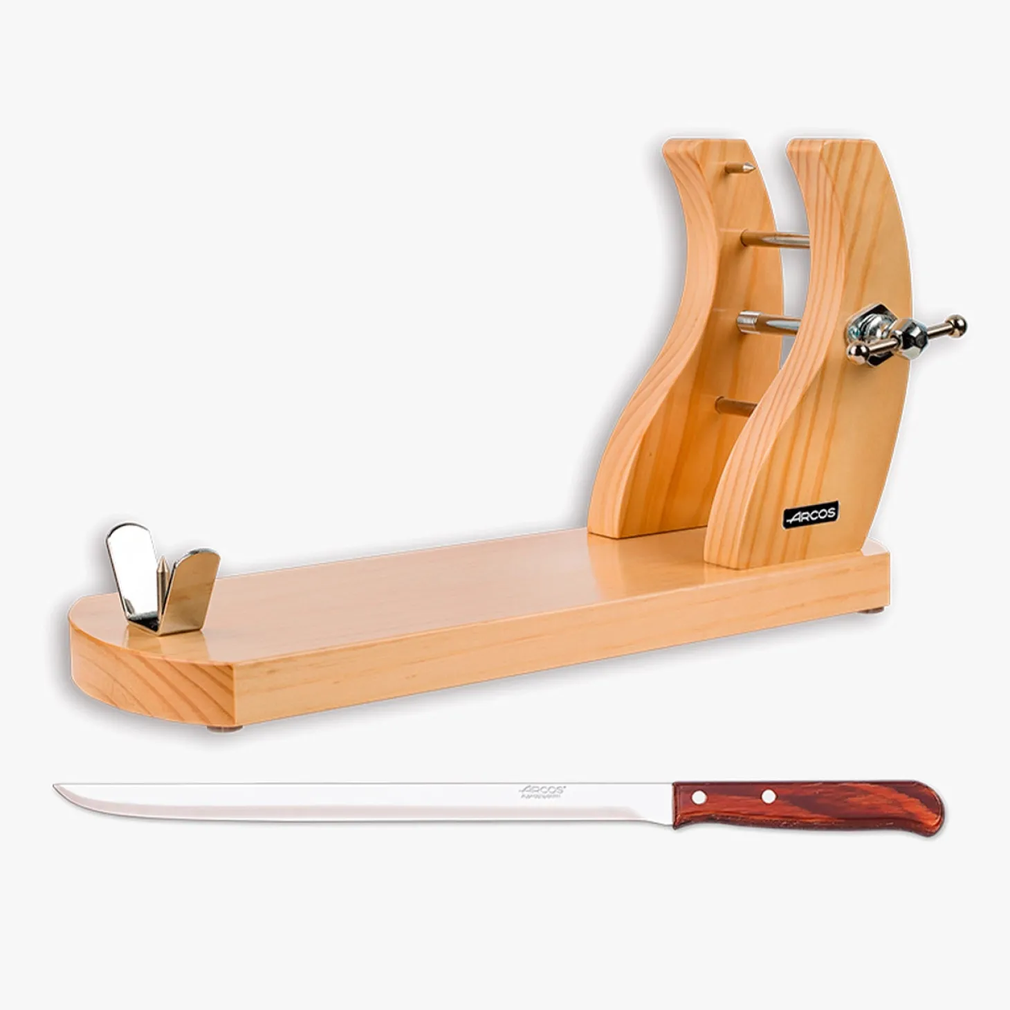 Support à jambon en bois de pin laqué, complément parfait à nos couteaux à jambon