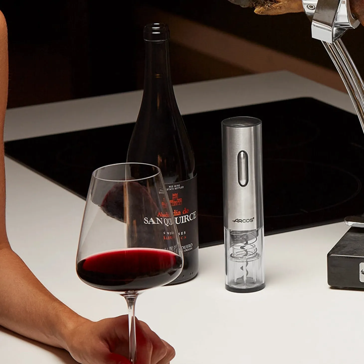Le tire-bouchon électrique en acier inoxydable et en ABS Arcos rend le processus d’ouverture des bouteilles de vin plus simple.