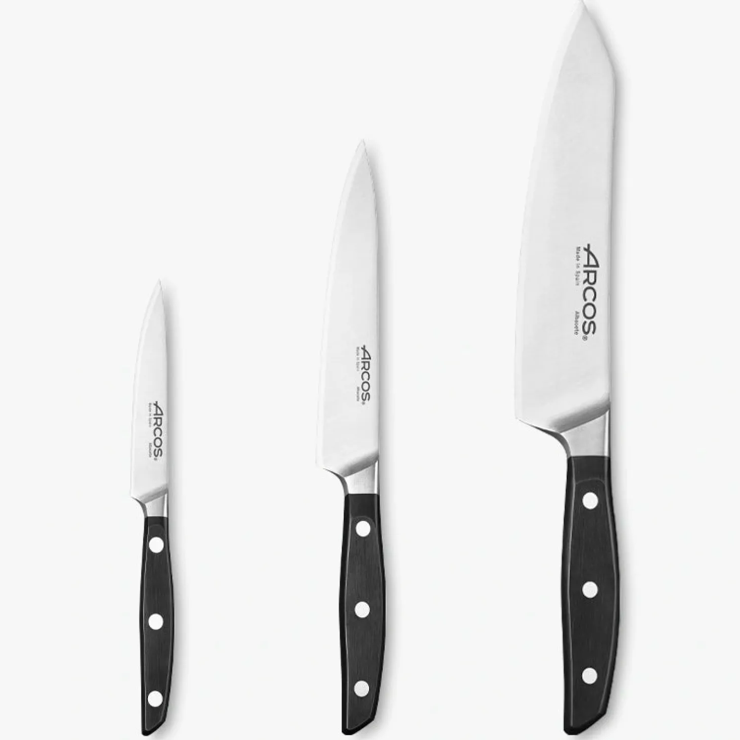 - Lame en acier inoxydable NITRUM®. Ce matériau est exclusif à Arcos et offre une puissance de coupe accrue.