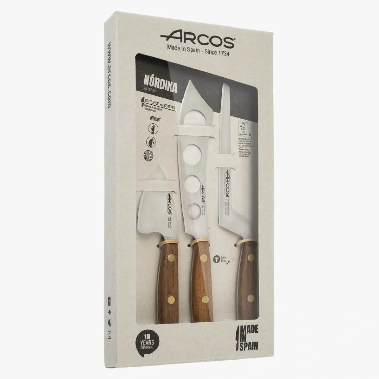 L’ensemble de couteaux à fromage de la série Nórdika, développé par Arcos à Albacete, vous offre une découpe inégalée, douce et précise, ainsi qu’une excellente performance et durabilité.