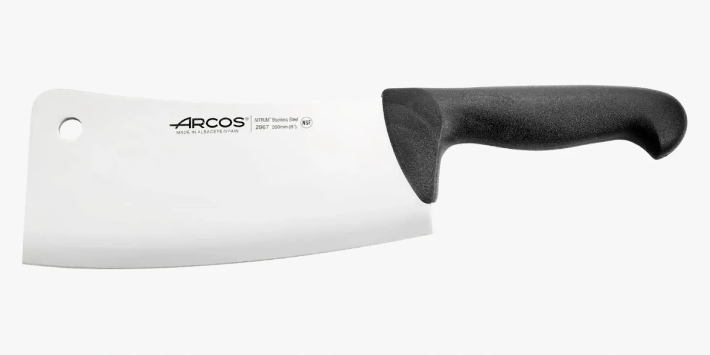 Lame large et forte. Capable de couper des grandes pièces de viande ou de couper des cotelettes.