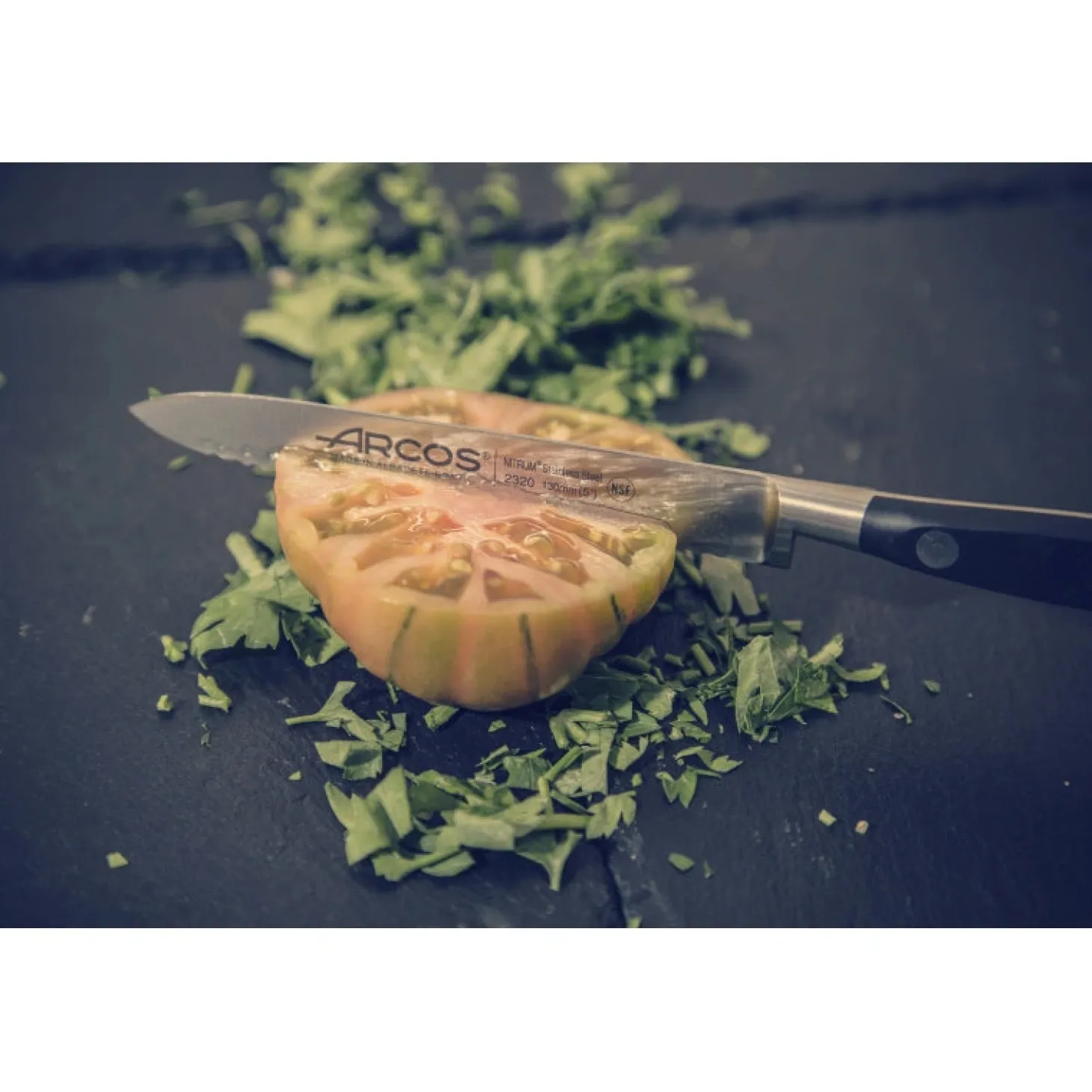 - Acier inoxydable NITRUM®, un matériau breveté par Arcos qui assure durabilité et puissance de coupe.