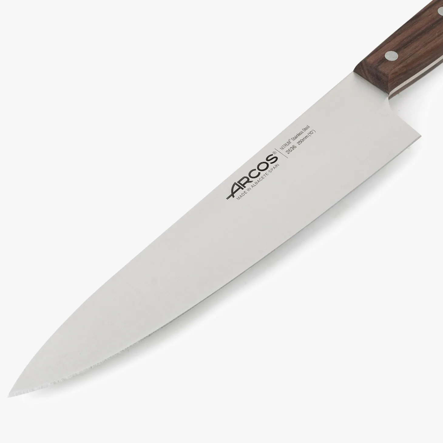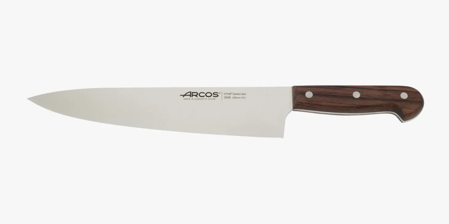 Lame large et forte avec un talon, fil lisse. Couteau multi usage pour les professionnels et les cuisiniers. Permet d’émincer et de couper.