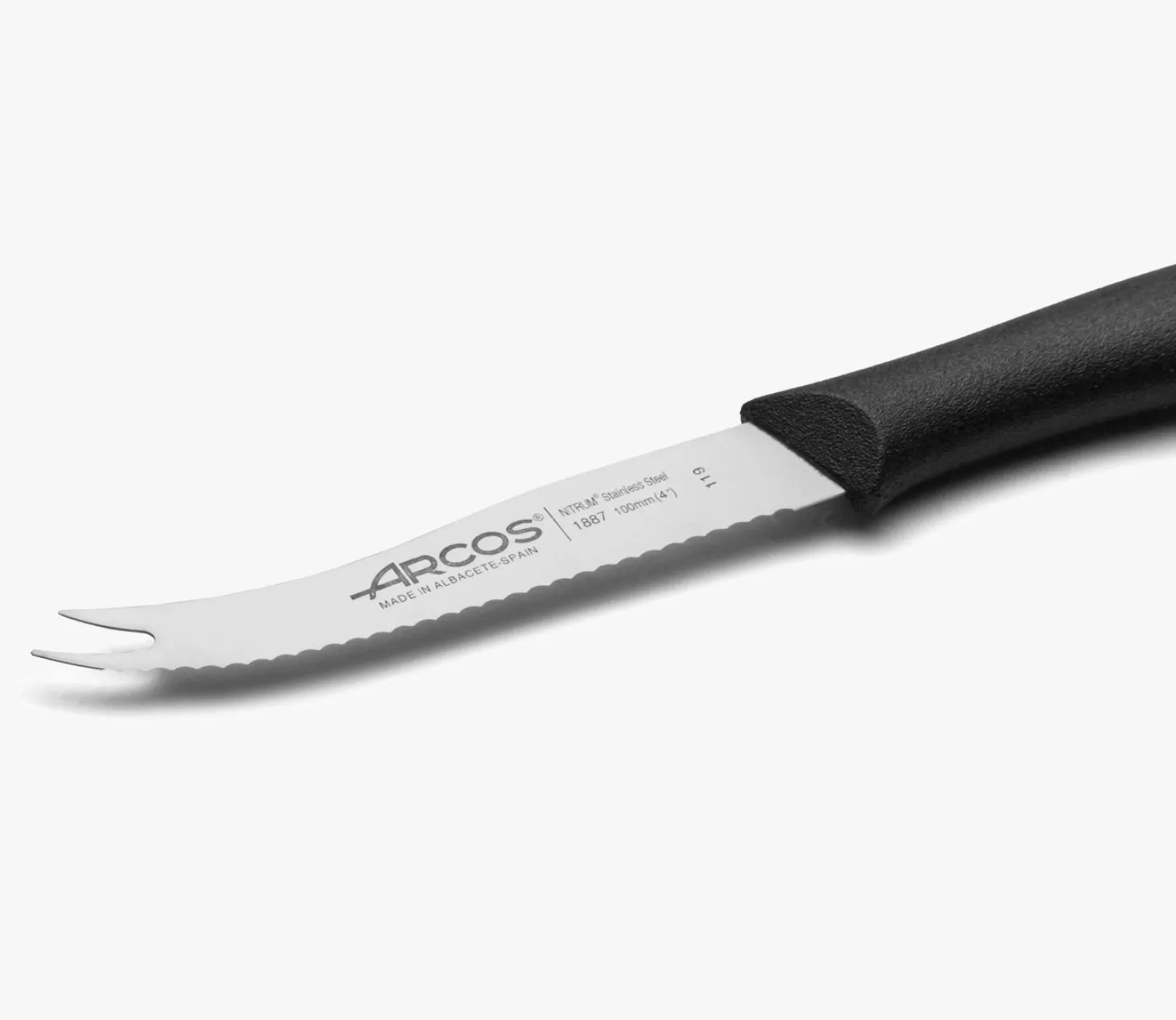 Le couteau à fromage série Nova 105 mm d’Arcos est un couteau à lame étroite et craatée, idéal pour piquer et servir les morceaux de fromage.
