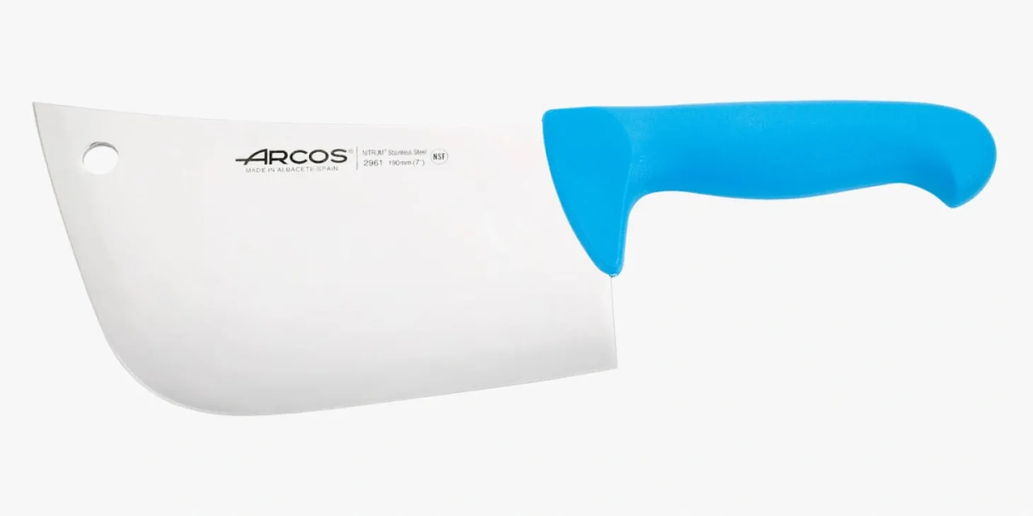 Lame large et forte. Capable de couper des grandes pièces de viande ou de couper des cotelettes.