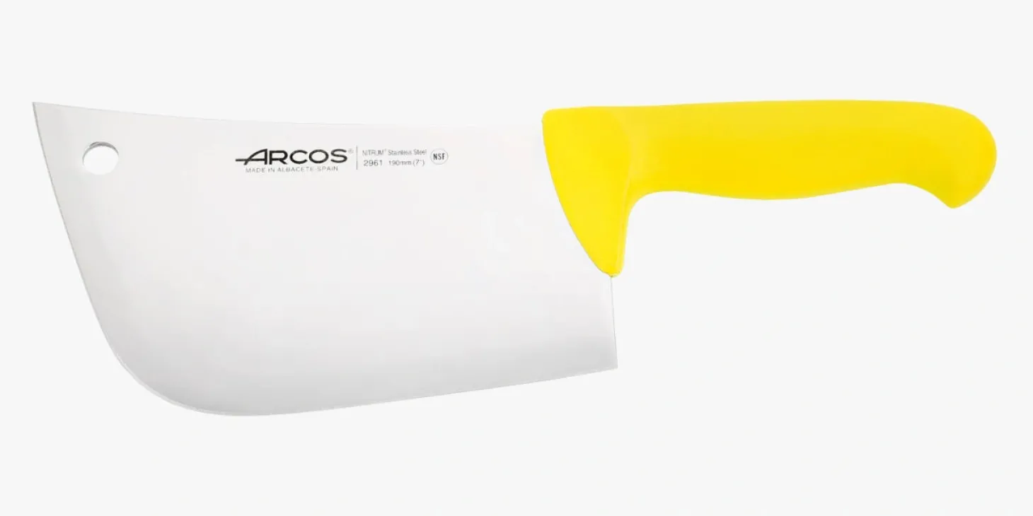 Lame large et forte. Capable de couper des grandes pièces de viande ou de couper des cotelettes.