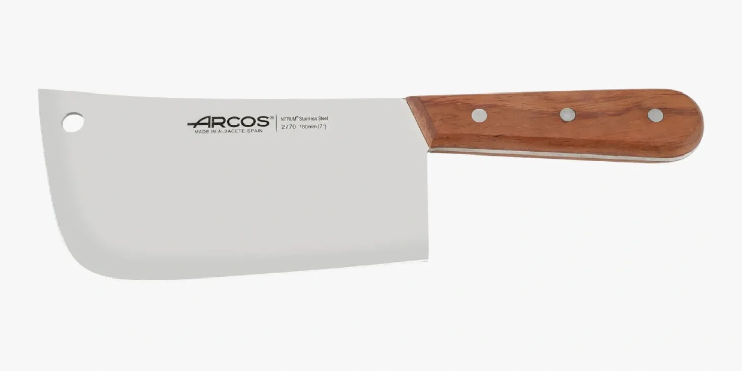 Lame large et forte. Capable de couper des grandes pièces de viande ou de couper des cotelettes.