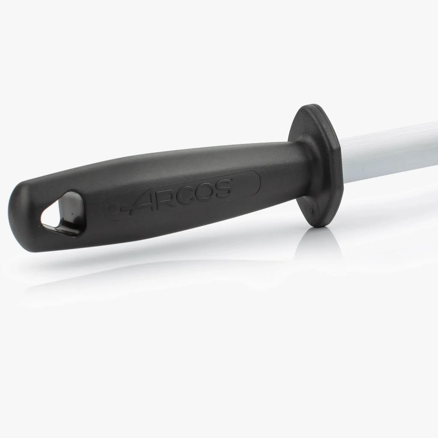 Découvrez la Fusil à aiguiser ovale professionnel Arcos, 300 mm d’acier au carbone chromé, parfait pour maintenir vos couteaux affûtés. Design élégant en noir, ergonomique et durable, idéal pour les chefs exigeants.