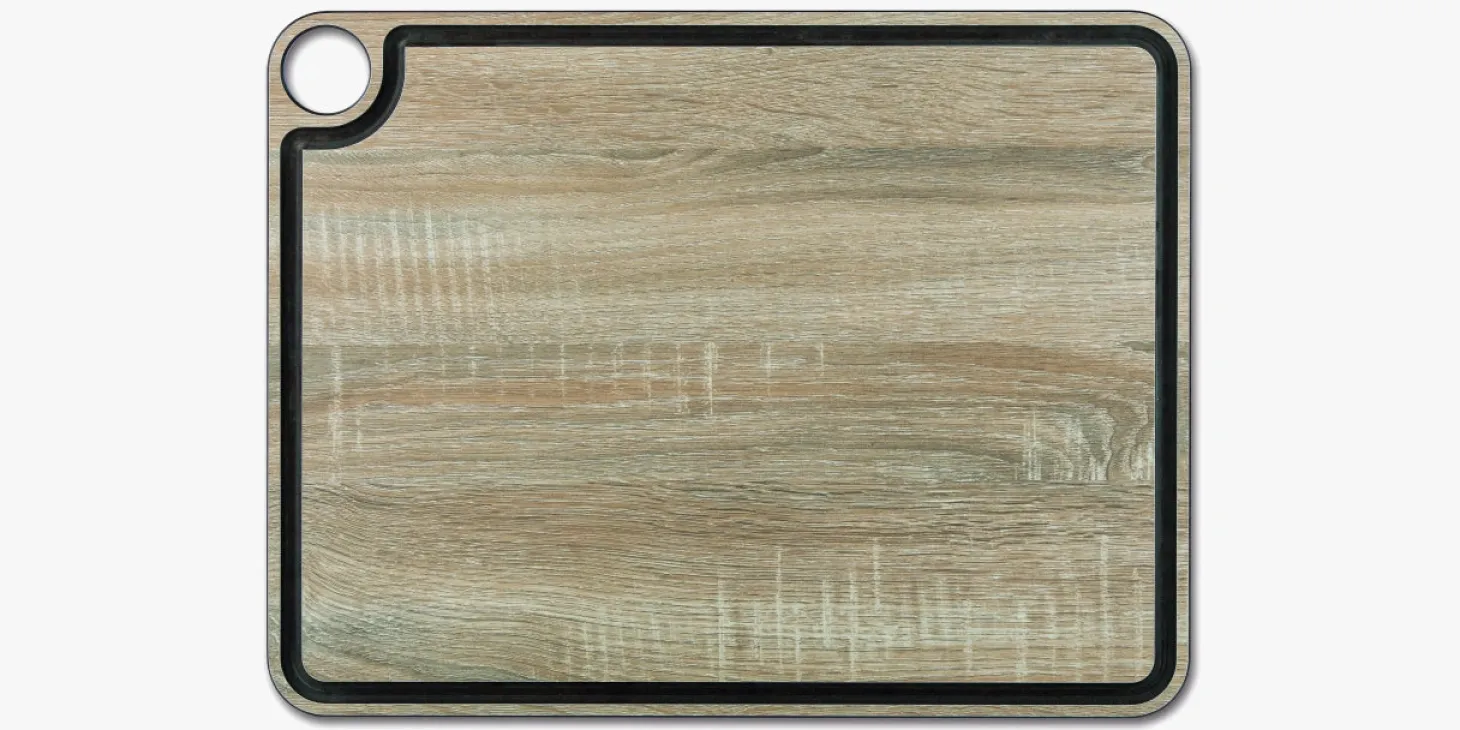 Planche à découper décors bois avec rigole 427 x 327 mm